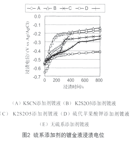 1、硫系添加劑對(duì)化學(xué)鍍金層形成的影響   使用硫系添加劑的鍍金液進(jìn)行化學(xué)鍍金,
